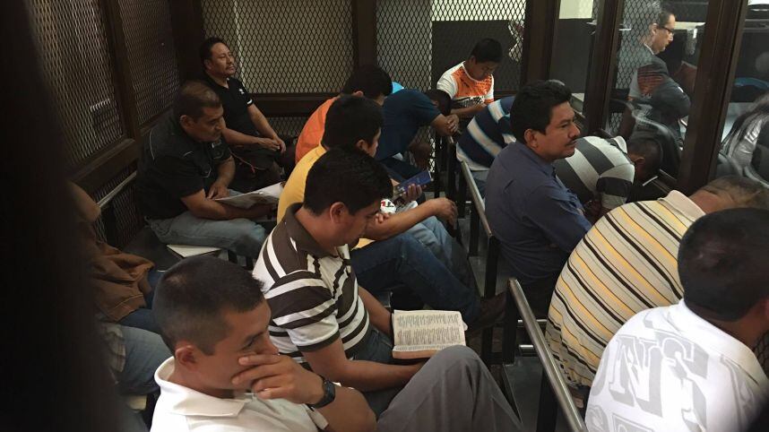 Los 19 ex integrantes de la Policía Nacional Civi (PNC) capturados por ejecución extrajudicial de tres campesinos en la aldea Samococh, Chisec, Alta Verapaz en 2014 se pusieron de pie y dijeron al juez que quieren declarar.