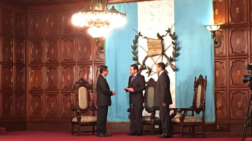 Los embajadores de Oscar René Hernández Guerra, de El Salvador, Stefano Gatto, de la Unión Europea, Harald Peter Klein, de la República Federal de Alemania y Peter Derrek Hof del Reino de los Países Bajos, presentaron sus cartas credenciales ante el presidente Jimmy Morales.