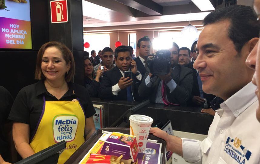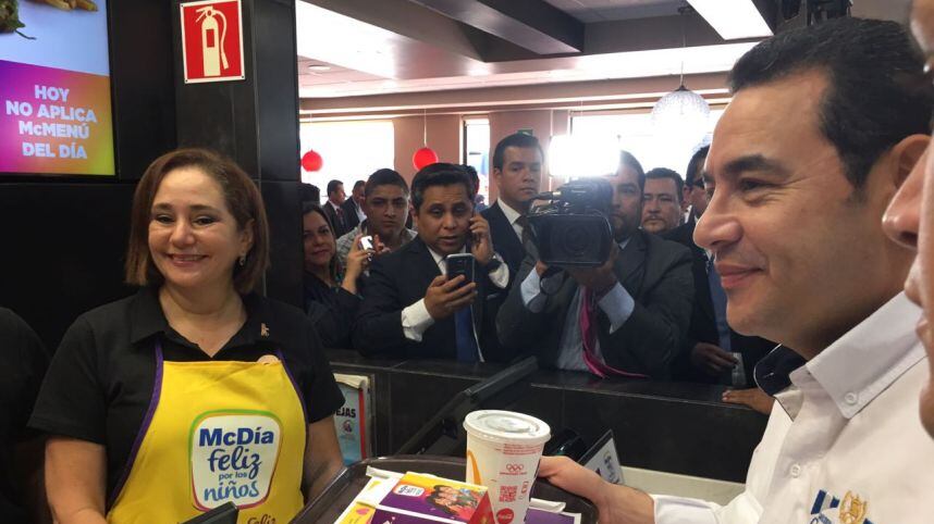 El presidente Jimmy Morales participó este 5 de octubre en el McDía Feliz, una actividad que busca captar ingresos para programas que benefician a la niñez guatemalteca, comprando un Big Mac.