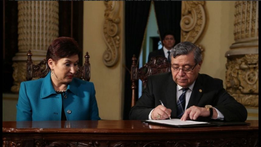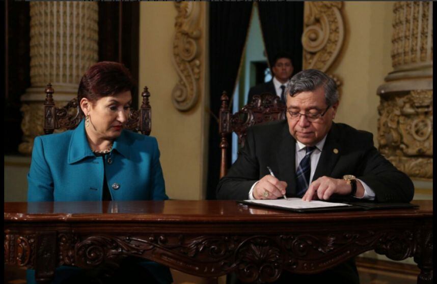 “Mucho se ha criticado a nuestro gobierno, pero estamos tratando de hacer bien las cosas”, reiteró Cabrera. Luego, los representantes de las instituciones, entre ellos Thelma Aldana, Carlos Mencos, Gladys Morfin y Jorge de León Duque, firmaron la ampliación.