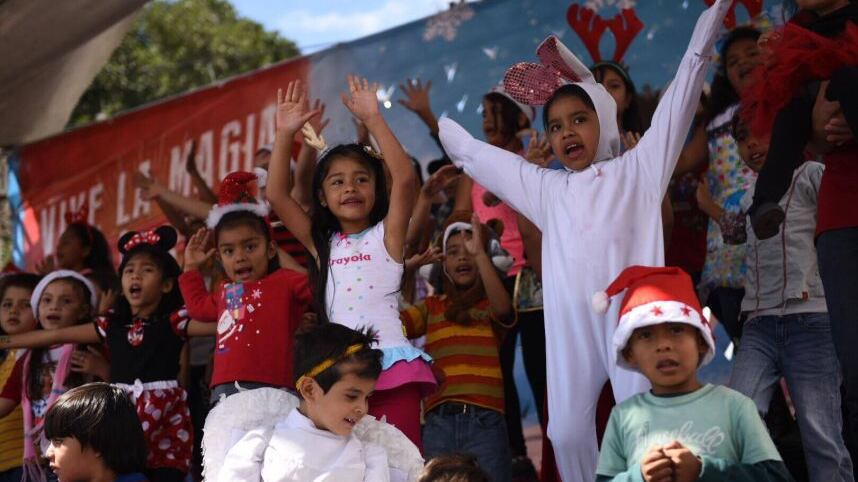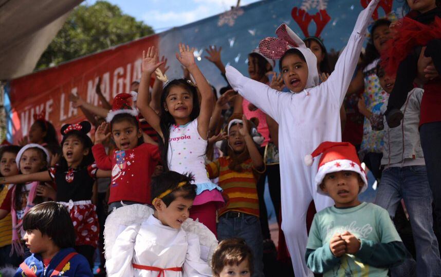 La baja temperatura del domingo no impidió que cientos de niños participaran este domingo en la grabación del anuncio “Dulce Navidad de Azúcar Caña Real”.