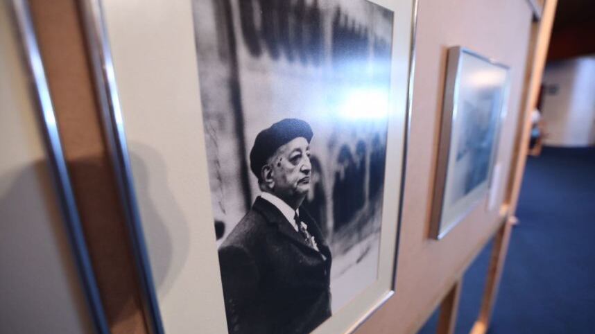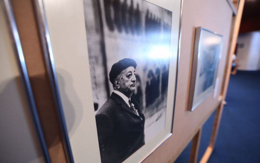 El arquitecto Álvaro Véliz dio por inaugurada una exposición fotográfica que “refleja las facetas diversas del autor de “Hombres de Maíz”. En medio de esta se ubica una pieza tallada por el escultor Eduardo de León. Esta es una cabeza de Asturias con rasgos de las piezas olmecas.