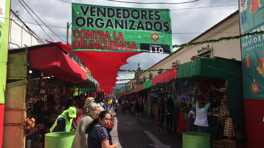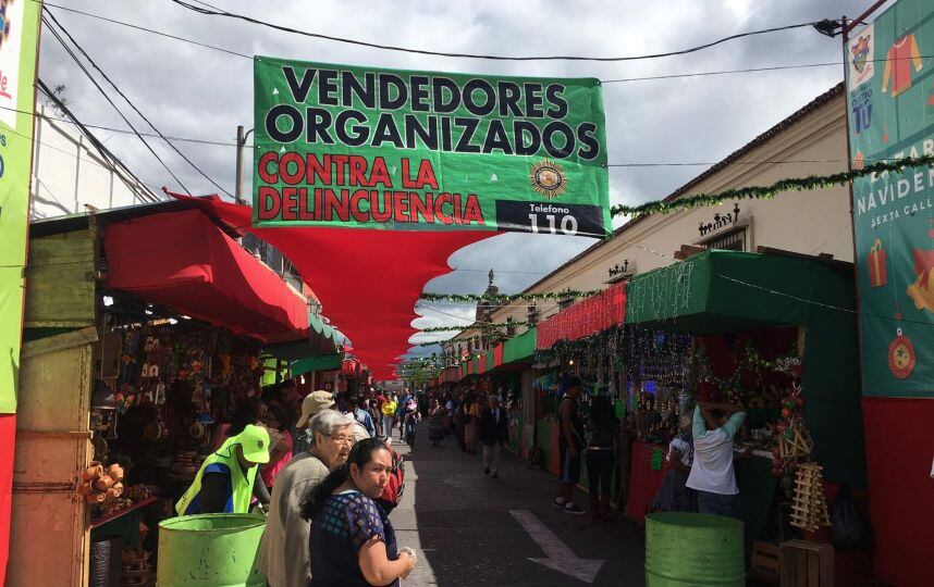 Cada año, un grupo de comerciantes instala sus puestos a un costado de la Catedral Metropolitana en donde ofrecen sus productos navideños. Este año decidieron enviar un mensaje a los delincuentes y para que los clientes estén seguros y puedan elegir sin preocuparse.