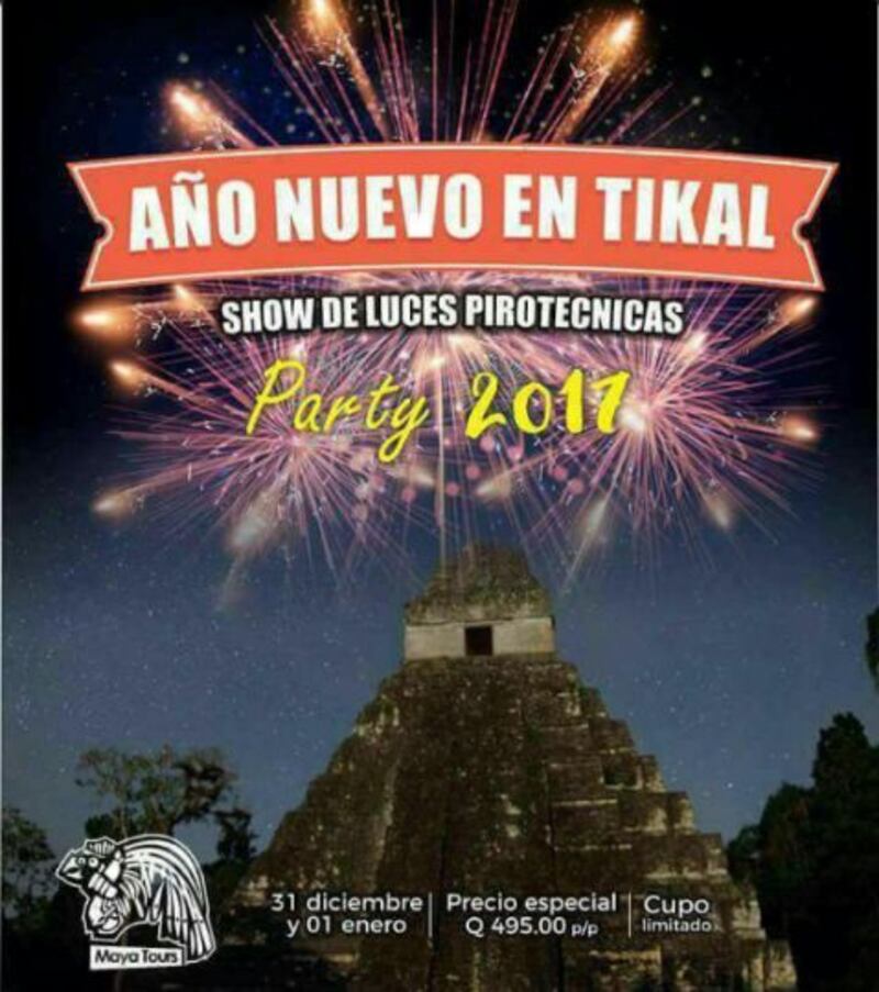 Durante los últimos días ha circulado en las redes sociales un supuesto evento para recibir el 2017 con un show de pirotecnia en Tikal, Petén. Sin embargo, el Ministerio de Cultura y Deportes ha aclarado que es información falsa.