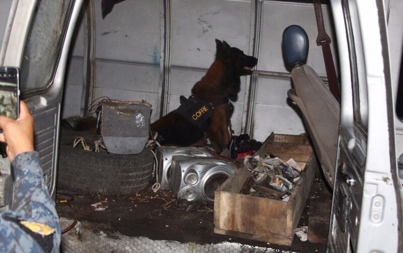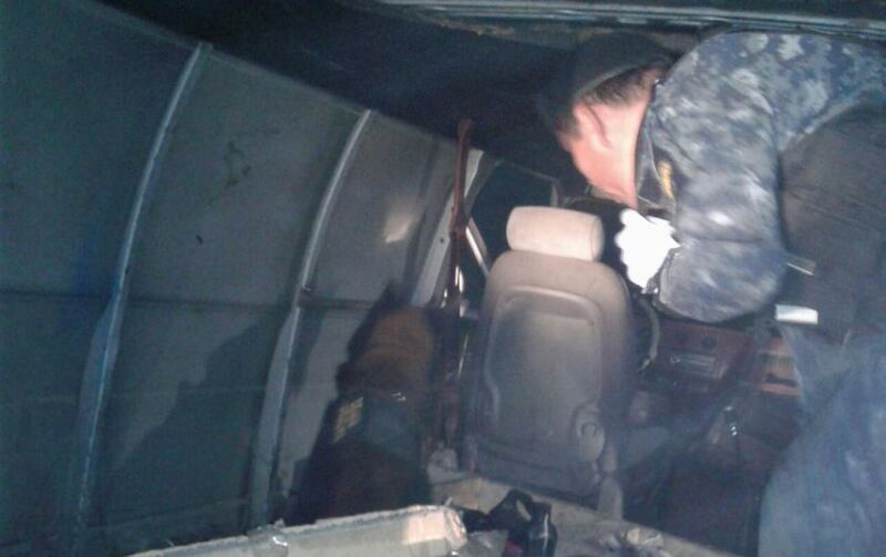 Como a simple vista no encontraron nada, hicieron una revisión minuciosa con apoyo del perro entrenado “Coffie” hasta establecer que el vehículo tenía un doble fondo.