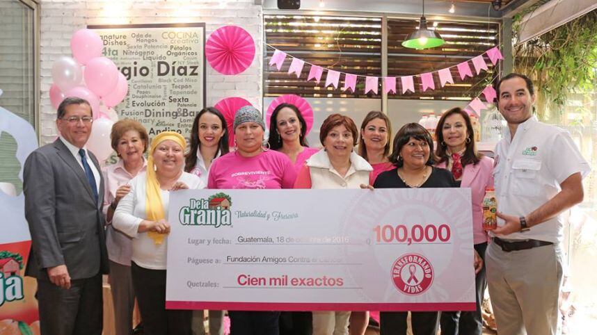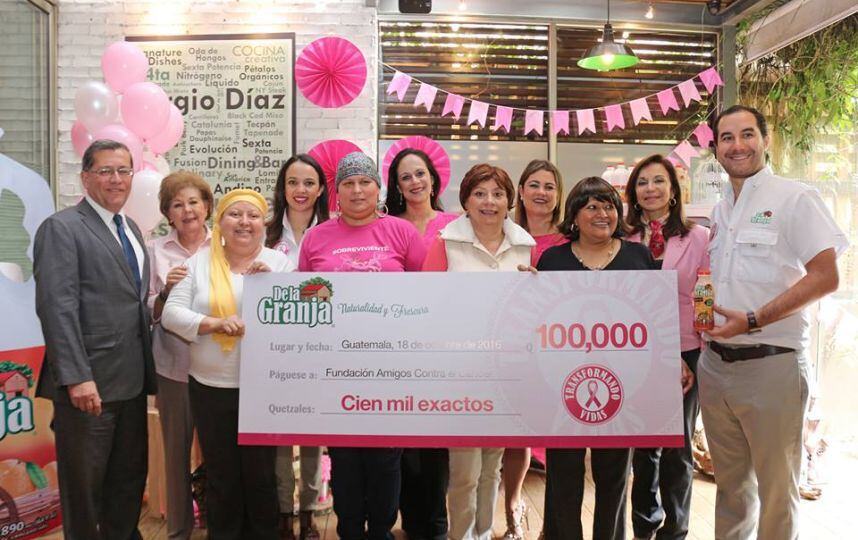 De la Granja busca transformar la vida de más de 275 mujeres que padecen de cáncer de mama en Guatemala. Para lograrlo han hecho un aporte económico de Q100,000 entregado a Fundecán.