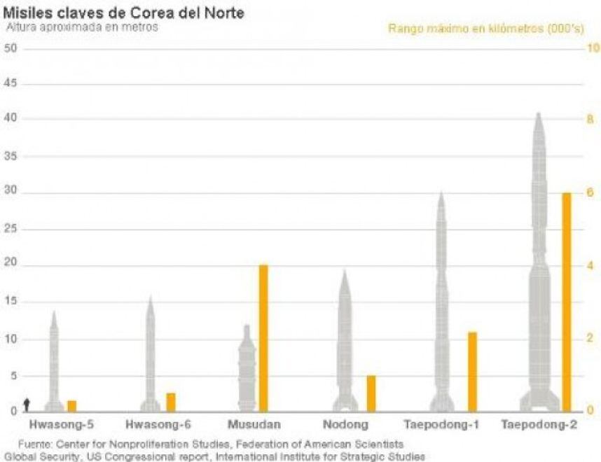 En 2006 se probó otro misil, el Taepodong-2, que según expertos podría tener un rango de varios miles de kilómetros. Lo mismo se hizo con los cohetes que poseían una tecnología parecida en 2009 y 2012. Los tres lanzamientos fracasaron.