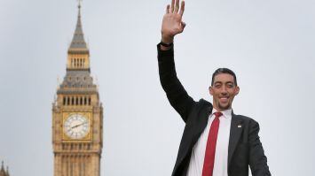 “Estaba muy interesado en lo alto que iba a ser, hasta qué punto de mis piernas iba a llegar. Una vez que lo vi, me di cuenta de lo pequeño que era”, comentó Sultan Kosen acerca de su acompañante en la sesión de fotos.