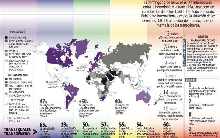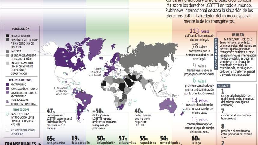 Cada vez más, el mundo está aceptando los derechos y protegiendo la dignidad de las personas transgénero. En marzo, Malta se convirtió en el segundo país europeo, después de Dinamarca, en permitirles a los transgéneros cambiarse se sexo en forma legal, sin ninguna intervención médica o estatal. De todas formas, la discriminación y la violencia contra las personas trans sigue siendo preocupante. Los asesinatos registrados, de acuerdo con la asociación “Transgender Europe”, llegaron a mil 730 al final del año pasado.