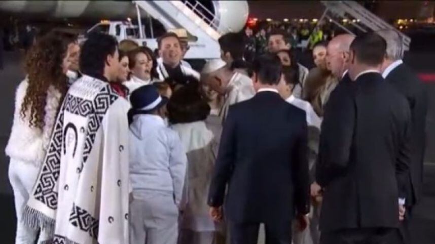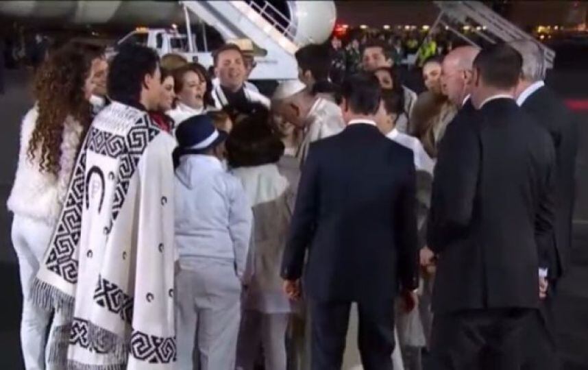 El Papa Francisco llegó a la Ciudad de México y fue recibido por el presidente Enrique Peña Nieto y su familia, así como autoridades civiles y religiosas.