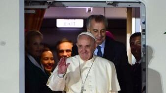 La noche del viernes 12 de febrero, el presidente de México, Enrique Peña Nieto y su esposa, Angélica Rivera recibieron al Papa Francisco en el Hangar Presidencial de la Ciudad de México.