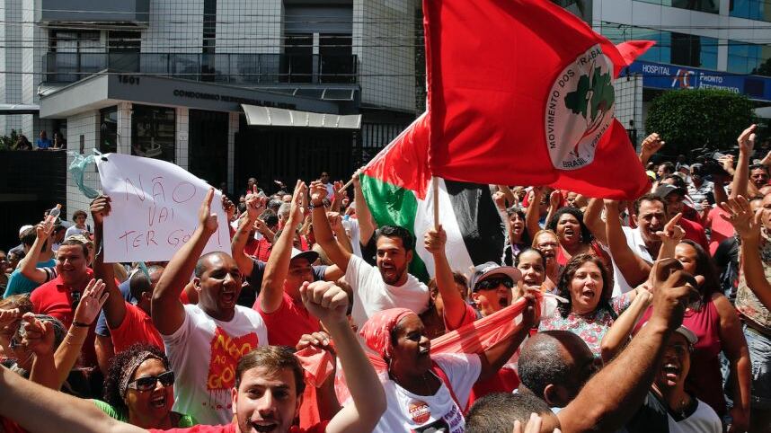 “Si atacan a Lula, me atacan a mí”, gritaban los manifestantes, con banderas rojas del Partido de los Trabajadores (PT, izquierda) en el poder, fundado por Lula al final de la dictadura militar en 1980.