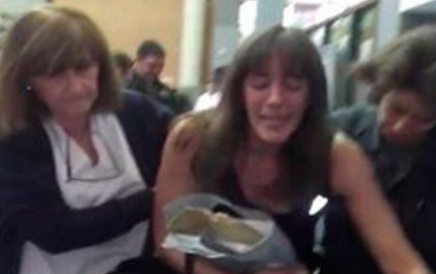 El video, grabado y subido a Internet el pasado 9 de marzo por su esposo, Abel Aguirre, capta el momento en el que la mujer es escoltada por personal de Edenor (Empresa Distribuidora y Comercializadora Norte Sociedad Anónima) y agentes de seguridad.