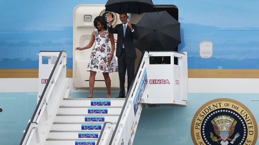 Acompañado de su esposa Michelle, y sus hijas Sasha y Malia, Barack Obama llegó en el avión presidencial Air Force One, el cual aterrizó en el aeropuerto internacional José Martí de La Habana a las 16:19 horas, tiempo local.