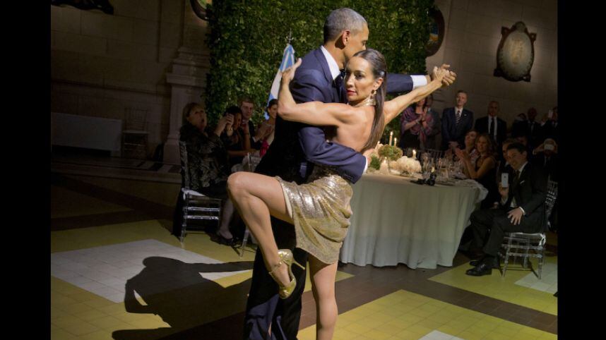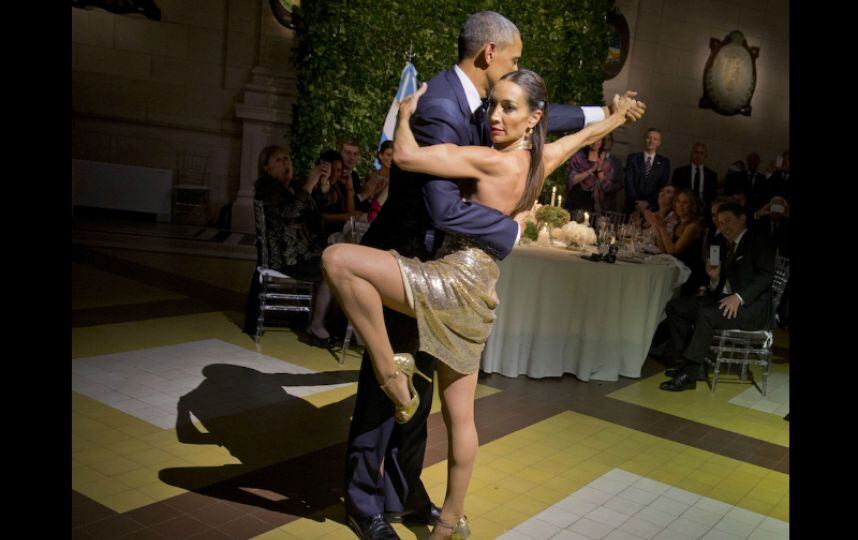 Anoche, durante la cena de gala ofrecida por el presidente Mauricio Macri, como parte de su visita oficial, el presidente de Estados Unidos, Barack Obama, sorprendió bailando tango. Algo a lo que poco después se le unió Michelle Obama, claro, cada uno con pareja distinta.