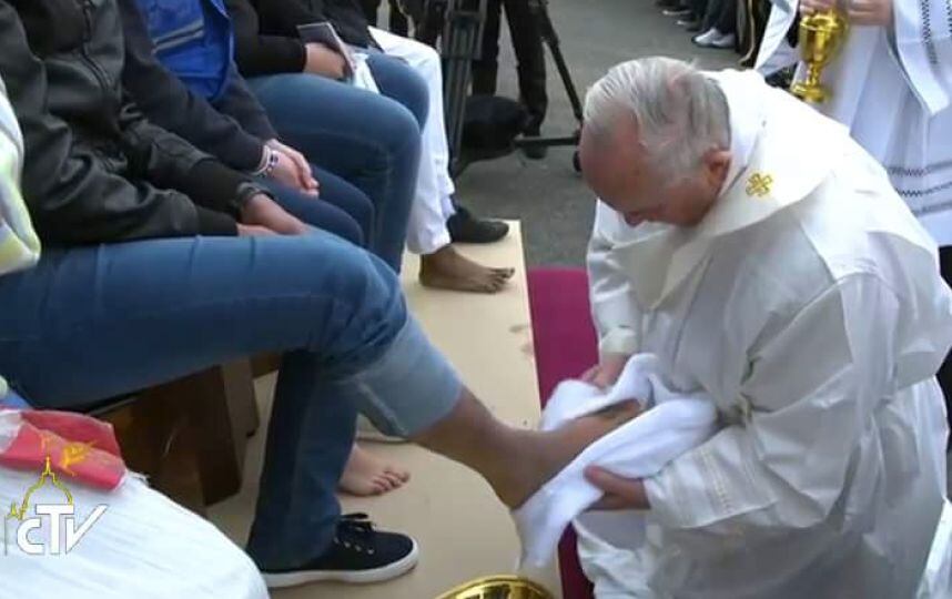 En una ceremonia realizada en un albergue para refugiados en las afueras de Roma, el papa Francisco llevó a cabo el tradicional lavatorio de pies del Jueves Santo 2016. No te pierdas el video.