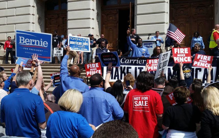 El capitolio del Estado fue el epicentro de una manifestación de sindicatos que se oponen a regulaciones que han provocado la reubicación de empresas de ese estado a México, el último de esos casos es el anuncio de la companía de aires acondicionados Carrier que trasladará sus operaciones.