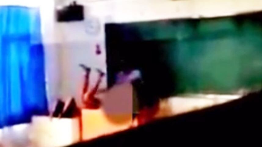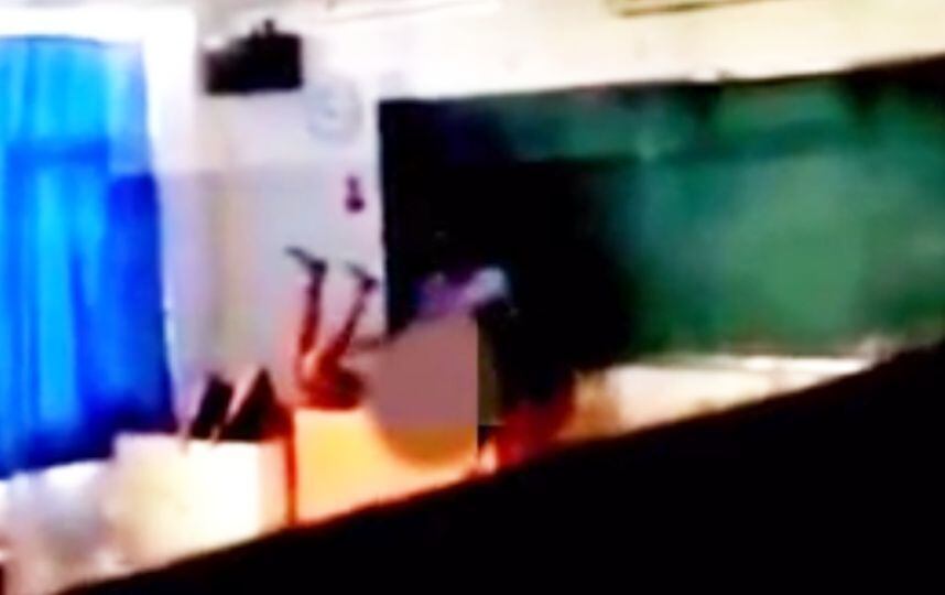 Un maestro tutor fue captado por la cámara de un video aficionado en el momento justo cuando tenía relaciones sexuales en un escritorio dentro de un salón de clases a plena luz del día.