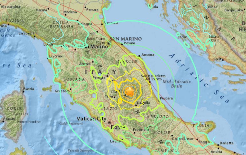 Se reportó un sismo de 6,4 grados en la Escala de Richter en Italia Central, al sur de la ciudad de Perugia, informó el Servicio Geológico Estadounidense (USGS por sus siglas en inglés). El movimiento telúrico también se sintió en Roma.