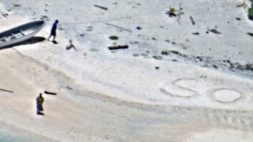 Como si se tratara de alguna película de Hollywood, dos náufragos fueron rescatados de una isla desierta gracias a que escribieron las siglas “S.O.S” en la arena.