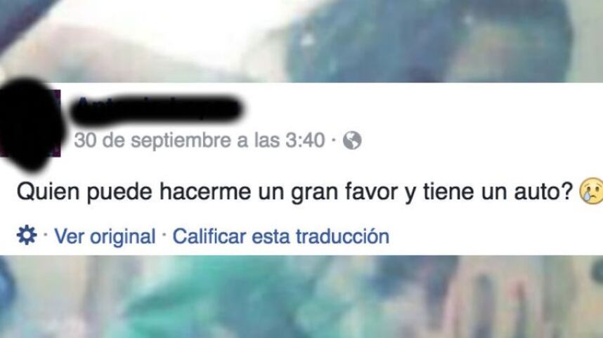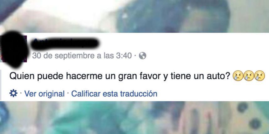Este decía: “¿Quién me puede hacer un enorme favor y tiene un auto?. Este tenía tres emojis de tristeza.