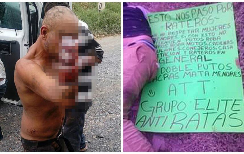 Esto nos pasó por rateros. Por no respetar mujeres y menores. Si con esto no entienden, putos roba-carros, roba-motos, cadenas, celulares, conejeros, en general; doble putos, lacras mata menores. Atentamente, Grupo Élite Anti-Ratas“, señalaba el mensaje completo.