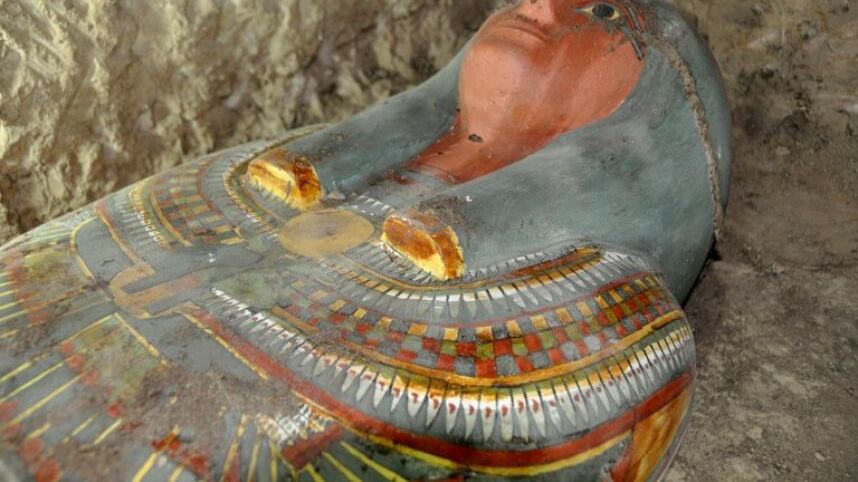 El enyesado de la momia “presenta muchas decoraciones coloridas que retoman símbolos religiosos de Egipto antiguo, como las diosas Isis y Neftis desplegando sus alas, o los cuatro hijos de Horus“, comenta Myriam Seco Álvarez, líder de la misión arqueológica española en Egipto.