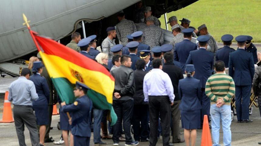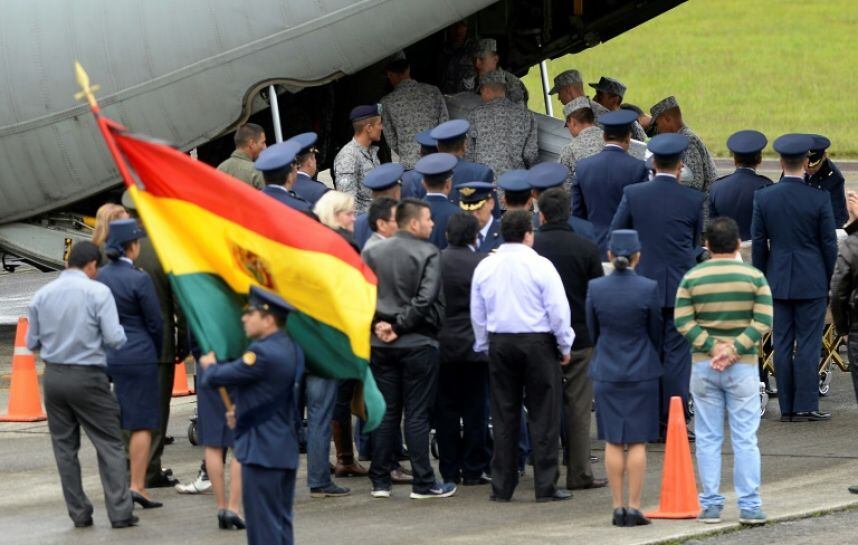 Tras recibir honores militares, los cuerpos de los cinco tripulantes bolivianos muertos fueron llevados a su país en un Hércules de la Fuerza Aérea Boliviana.