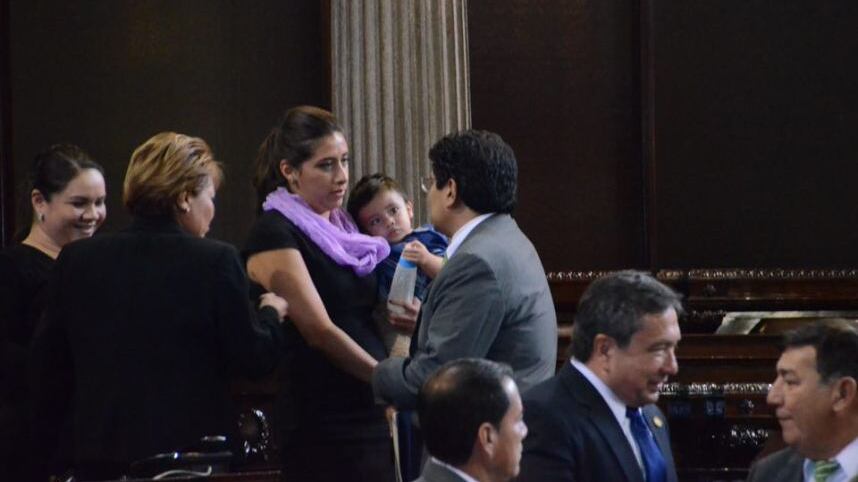 La diputada Eva Monte Back, hija de la también congresista Delia Back, llevó a su pequeño hijo a la plenaria. Algunos funcionarios se acercaron a saludar al pequeño.