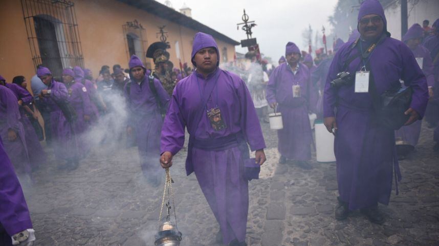 Este quinto domingo de Cuaresma, La Antigua Guatemala se llenó de color ya que la Consagrada Imagen de Jesús Nazareno de la Caída, de la iglesia de San Bartolomé Becerra, recorre las calles empedradas.
