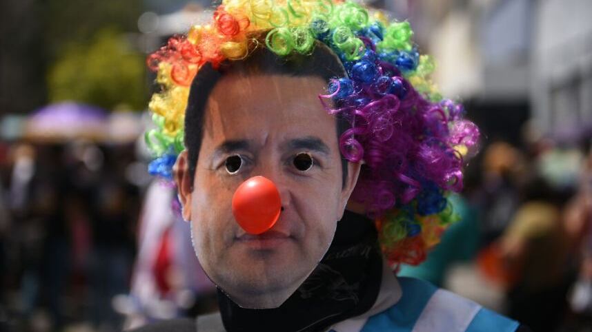 “Soy Jimmy, el ‘payasin’ y no sé nada”, “Jimmy tu tiempo está vencido” y “Ni corrupto ni ladrón… no, era broma”, estos son algunos de los mensajes que los estudiantes de la Universidad de San Carlos de Guatemala (Usac) muestran, cantan y gritan en el desfile bufo del Viernes de Dolores que recorre el Centro Histórico.
