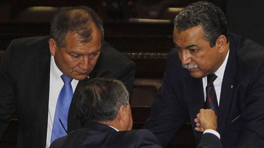 El diputado Manuel Conde Orellana mostró su inconformidad en pleno hemiciclo este día en que, finalmente, los diputados rechazaron la enmienda al artículo 100 de la Ley de Servicio Civil que fue presentada por el presidente del Congreso, Mario Taracena, y el parlamentario antes mencionado.