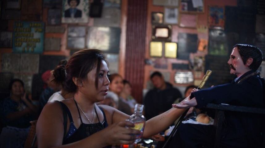 Guatemaltecos veneran a San Simón acompañados de tabaco y aguardiante