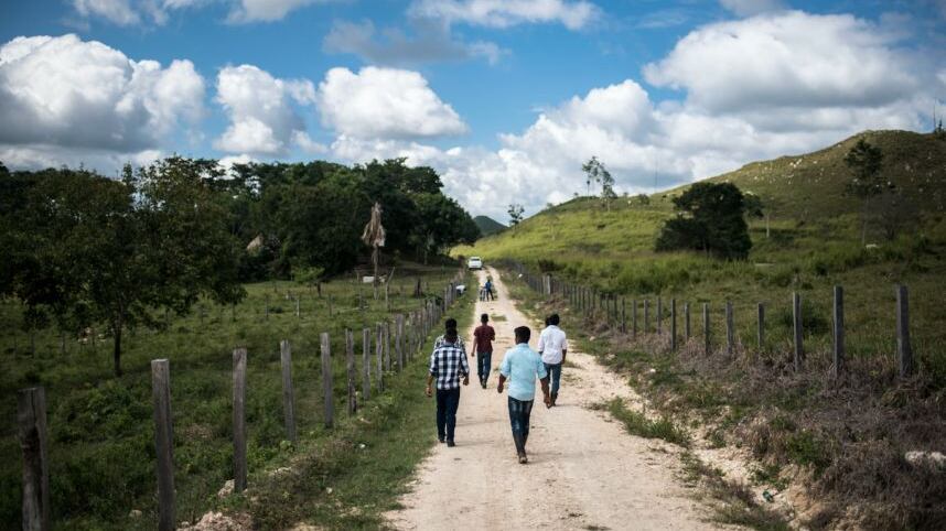 Montañas rodean las comunidades, los caminos de piedra y tierra separan las viviendas, que han sido construidas precariamente con lámina y madera. En buena parte del área no hay servicios básicos. Son escasos los hogares que poseen un panel solar en el techo, que les lleva un poco de luz durante la noche. Así viven las comunidades próximas a Belice.