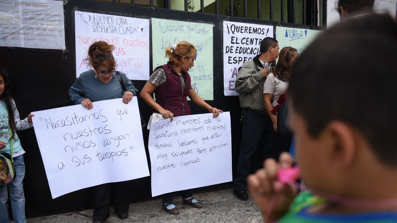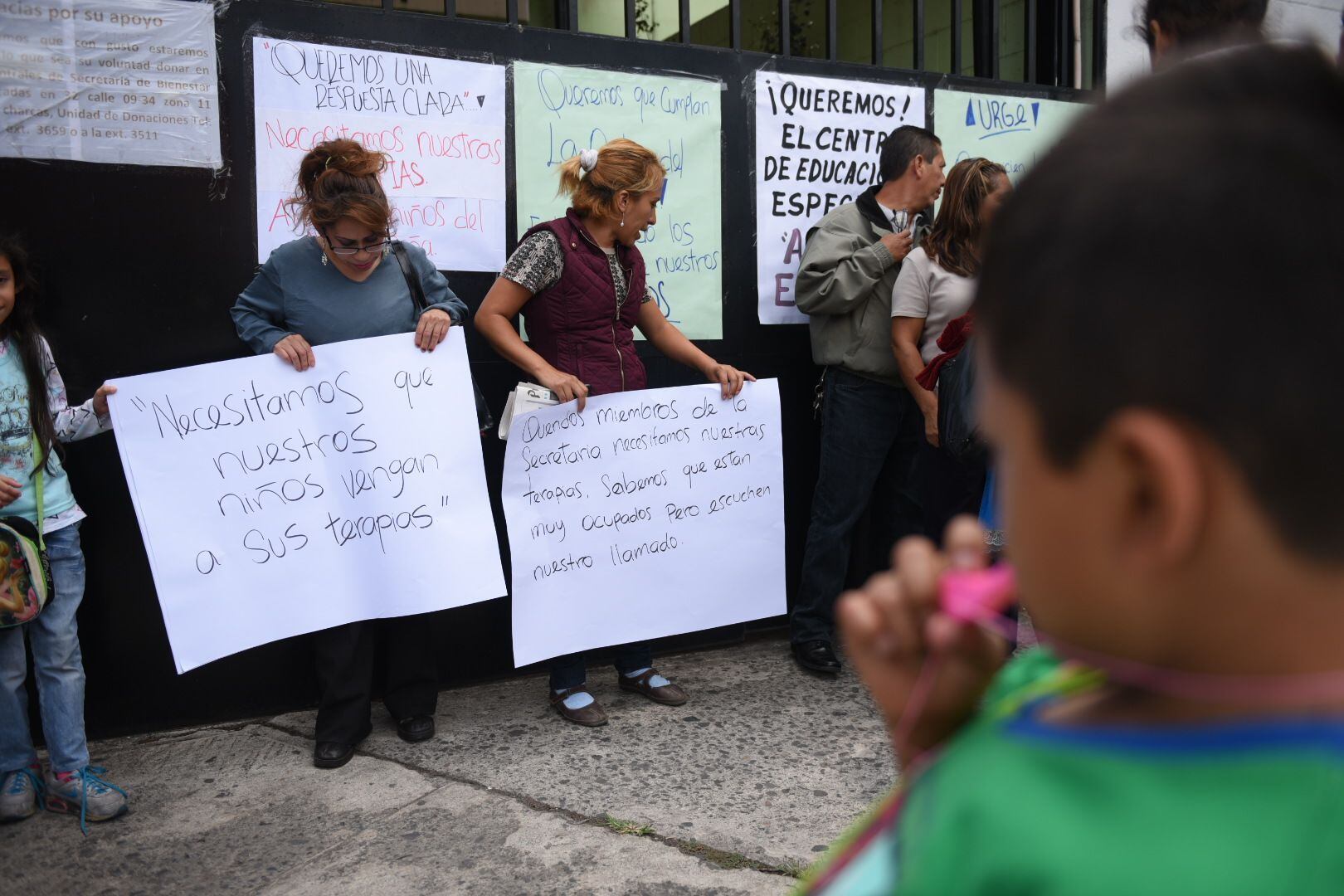 Alrededor de 680 niños con problemas especiales, entre ellos autismo y síndrome de down, han dejado de recibir sus terapias debido a que el Centro de Educación Especial fue ocupado por 100 menores que estaban internados en el Hogar Seguro Virgen de la Asunción.