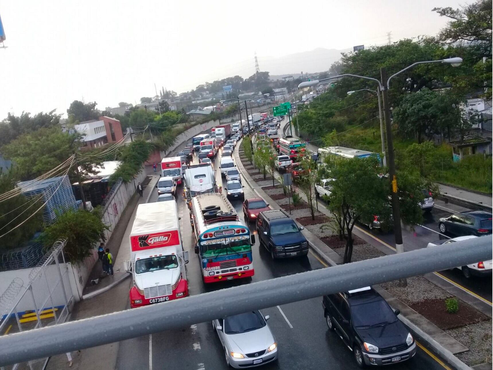Amílcar Montejo, intendente de la Policía Municipal de Tránsito (PMT), dijo que la congestión vehicular llega hasta el puente Belice y recomendó a los conductores tomar vías alternas como ruta a El Salvador.