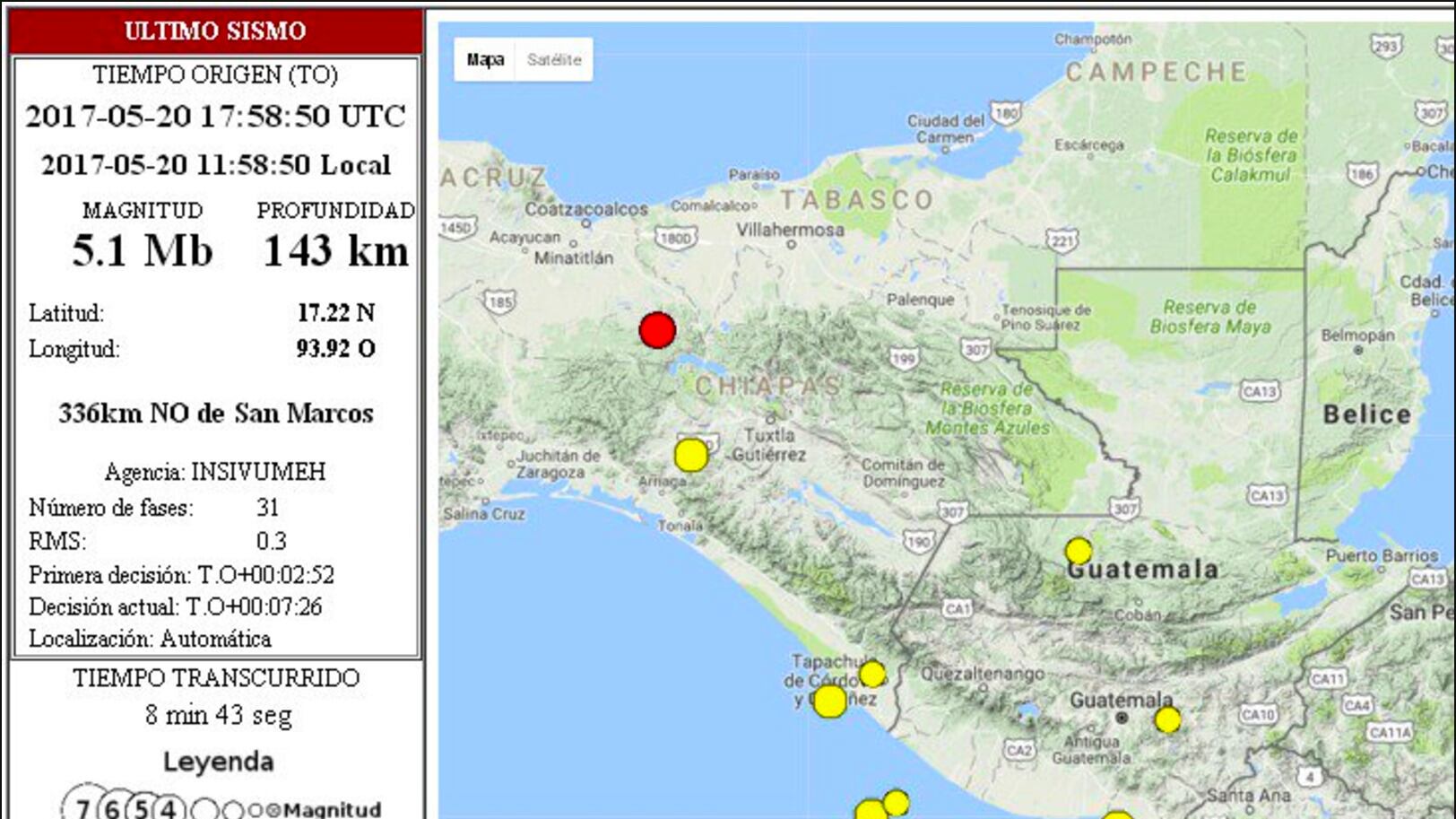 Este sábado se registraron dos sismos, de acuerdo con reportes del Instituto Nacional de Sismología, Vulcanología, Meteorología e Hidrología (Insivumeh).