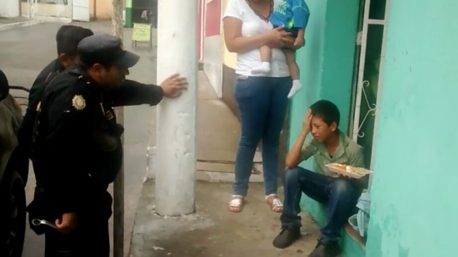 En las imágenes se ve al menor llorando y denunciando el hecho ante unos agentes de la Policía Nacional Civil, quienes indagaron sobre el suceso.