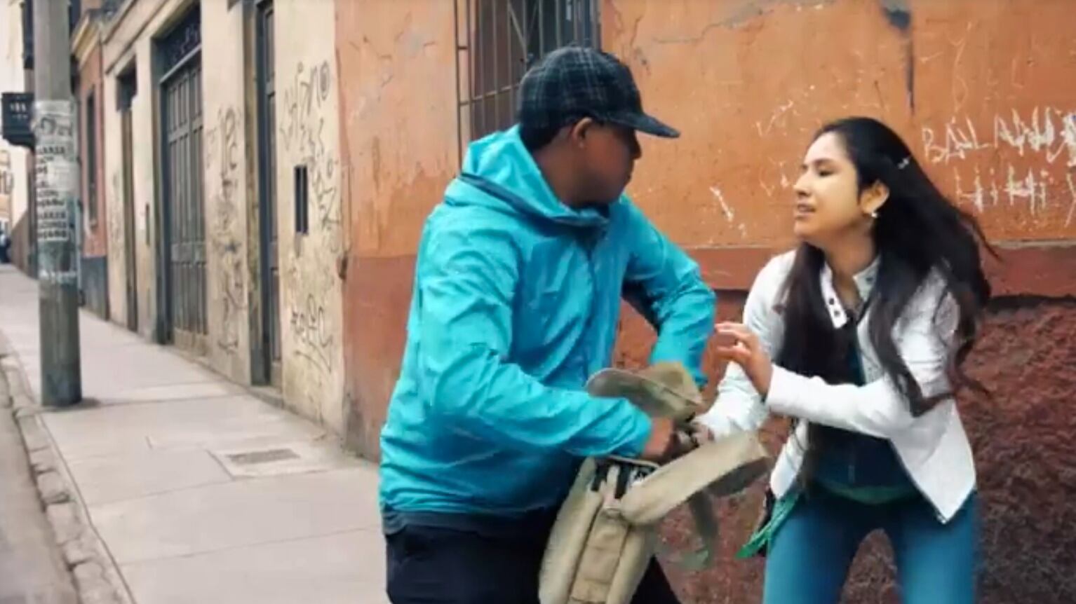 En el clip de 20 segundos de duración se dramatiza un asalto en una zona urbana de Perú y se explica el correcto uso de los botones, los cuales envían una señal a un centro de vigilancia para así dar aviso a las autoridades y que estas atiendan la emergencia y auxilien a las víctimas.
