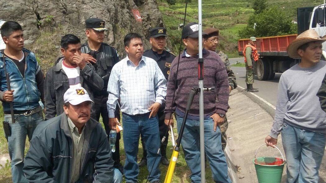 Personal de la Policía Nacional Civil (PNC) acompaña el proceso, que es realizado por personal del Instituto Geográfico Nacional (IGN) y autoridades de la región.