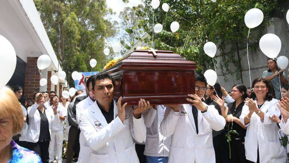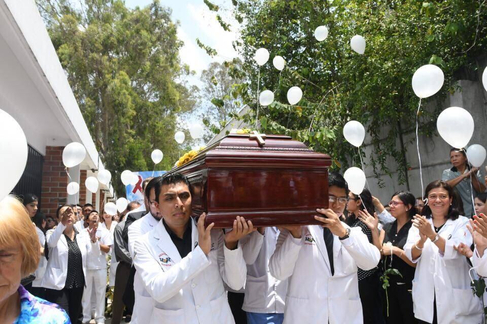 Portando globos blancos, y entre lágrimas y aplausos, los presentes le dieron el último adiós a Mejía Villatoro, quien laboraba en el referido centro asistencial.