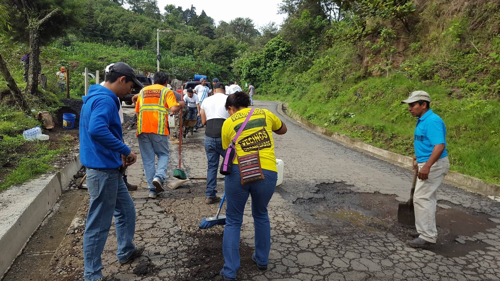 Ante la falta de respuesta del alcalde Álvaro González, este domingo, un grupo de vecinos de San Vicente Pacaya, Escuintla, se agrupó para reparar cinco kilómetros de carretera.