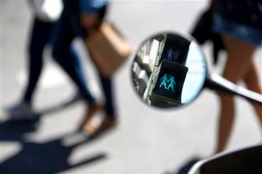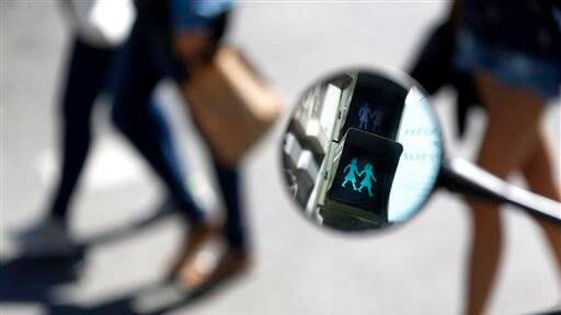 Otros semáforos para peatones muestran parejas tomadas de la mano, algunas del mismo sexo y otras del género opuesto.