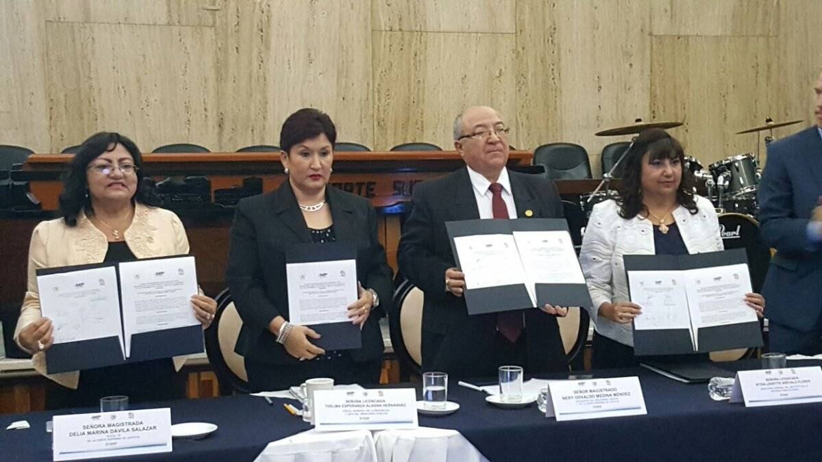 Autoridades del Ministerio Público (MP), el Instituto de la Defensa Pública Penal (IDPP) y el Organismo Judicial (OJ) firmaron este lunes un acuerdo interinstitucional para aplicación de los procedimientos para delitos menos graves por Juzgados de Paz Penal.