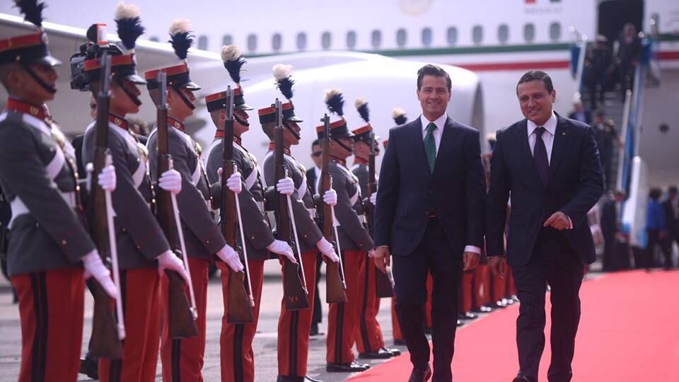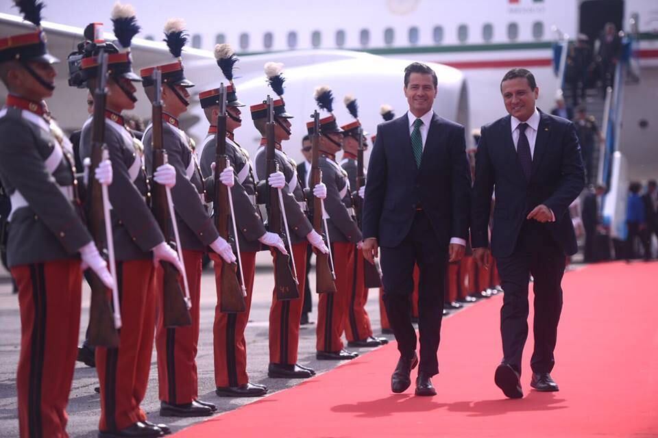 El presidente de México, Enrique Peña Nieto, llegó este lunes a Guatemala en una visita oficial de dos días para discutir con su homólogo Jimmy Morales sobre planes de seguridad y migración.
