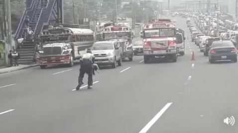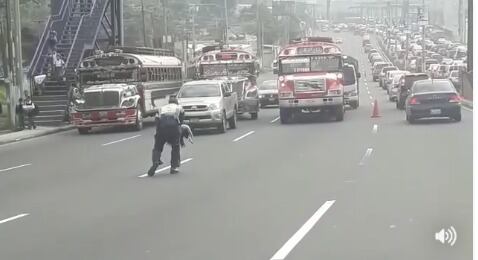 La vocera de la institución, Dalia Santos, compartió las imágenes del momento en el que el agente detiene los tres carriles que se dirigen hacia la Ciudad para recoger del suelo a un perro herido.