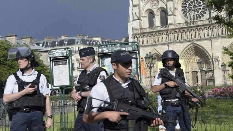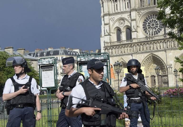 Un gran número de patrullas ocupó la zona en la Ile de la Cité, en medio del río Sena, y las autoridades exhortaron a la gente a mantenerse alejada.