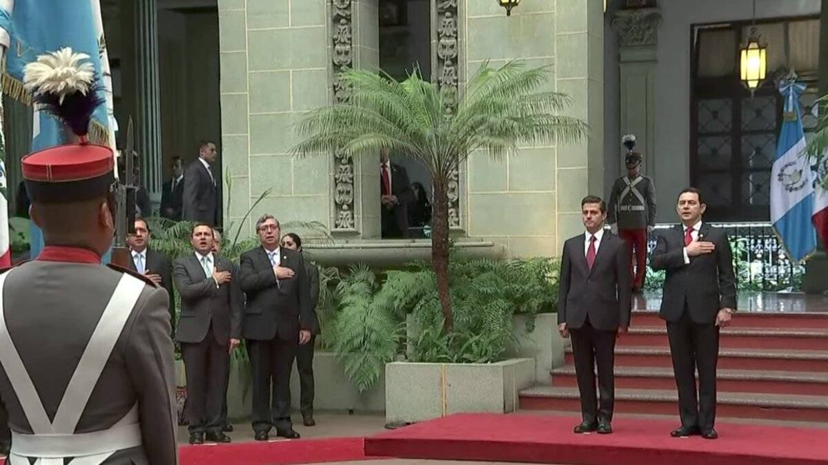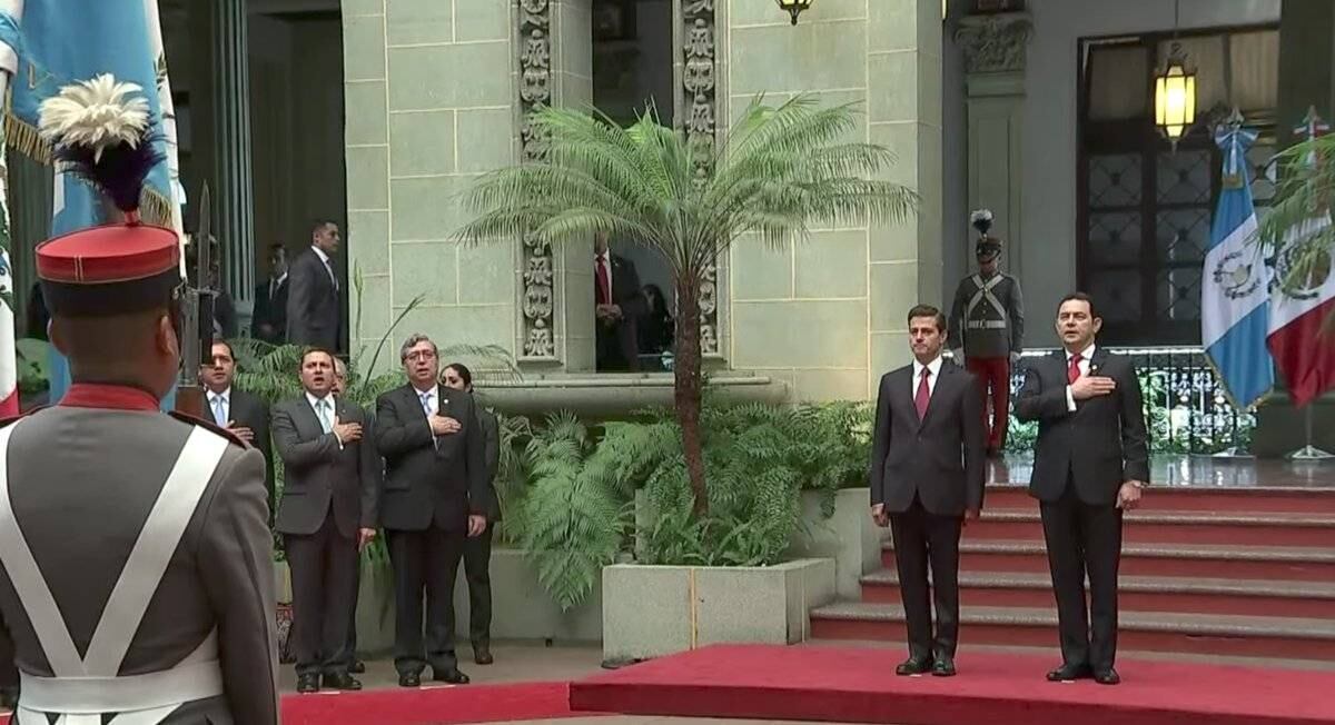 El presidente guatemalteco Jimmy Morales recibió este martes en el Palacio Nacional de la Cultura a su homólogo de México, Enrique Peña Nieto, quien se encuentra de visita en el país para cumplir una agenda de dos días.