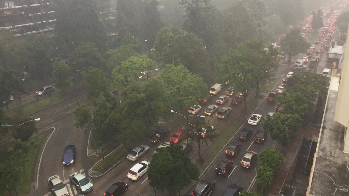 Usuarios en redes sociales reportan fuerte lluvia acompañada de actividad eléctrica y viento en varios departamentos del país. En la Avenida Reforma de la zona 10 capitalina, así como en calzada San Juan y Roosevelt, se registra mayor afluencia de vehículos.