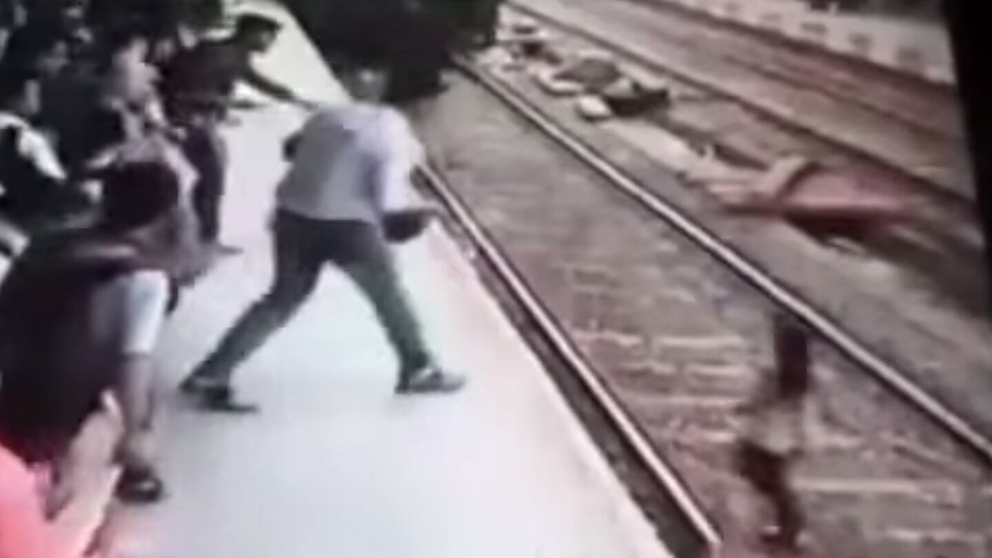 Una joven identificada como Pratiksha Natekar sufrió un severo accidente mientras intentaba cruzar las vías del tren en una estación en la India.